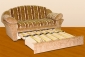 Габариты (ШхГхВ), мм: 1700х870х940. Спальное место, мм: 1950х1260. Каркас - хвойные породы древесины, многослойная березовая фанера. Механизм трансформации «Выкатной». Спинка - настил ППУ. Сиденье - ортопедические латы, настил ППУ. Спальное место - ортопедические березовые латы, настил ППУ. Бельевой ящик - белое ламинированное ДВП. Обивка - под заказ. Опоры - пластиковые изделия.