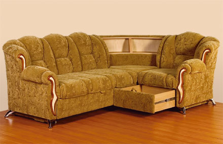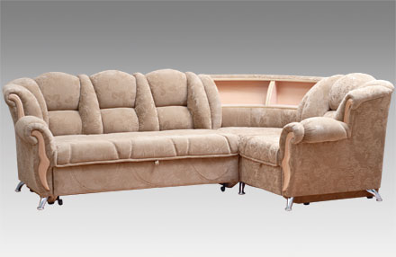 Габариты дивана (ШхГхВ), мм: 2600×1700×1000. Спальное место, мм: 2000×1350. Габариты кресла (ШхГхВ), мм: 950×950×1000. Каркас — хвойные породы древесины, многослойная березовая фанера. Механизм трансформации «Дельфин», на каждый день, надежный, легко раскладыватся. Спинка — основа жесткие эластичные ремни, настил ППУ. Сиденье — основа пружина «Змейка», настил ППУ. Бельевой ящик — белое ламинированное ДСП, механизм полного выката, максимальная нагрузка 25 кг. Подлокотники — настил ППУ, деревянные декоративные накладки. Обивка — под заказ. Опоры — никелированные металлические изделия. Декоративный стол — ламинированное ДСП, цвет — бук, вишня. Стоимость мебели зависит от выбранной обивки. Цены на сайте могут отличаться от действующих. Точную стоимость мебели уточняйте в салоне.