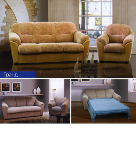 - Механизм трансформации «французская раскладушка»; - В отличие от набора «Гранд Н» спинки набора «Гранд» производятся с утяжкой; - Спальное место 3-х местного дивана 1320х1860 мм. 3р(3); - Спальное место 2-х местного дивана 800х1860 мм. 2р(2); - Возможен офисный вариант, без механизма трансформации; - Диван может комплектоваться удобным креслом.