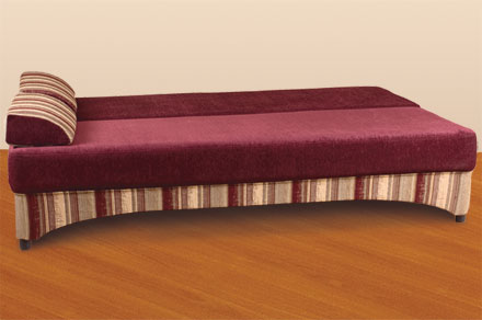 Габариты (ШхГхВ), мм: 2030×890×900. Спальное место, мм: 2030×1450. Каркас — хвойные породы древесины, многослойная березовая фанера. Механизм трансформации — «Еврокнижка», надежный, легко раскладывается. Спинка и сиденье— основа ППУ. Подушки — наполнитель поролоновая крошка. Бельевой ящик — березовая фанера, белое ламинированное ДВП. Подлокотники — ППУ, изготовлены по технологии контурной резки. Обивка — под заказ (шениллл, флок). Опоры — никелированные металлические изделия.